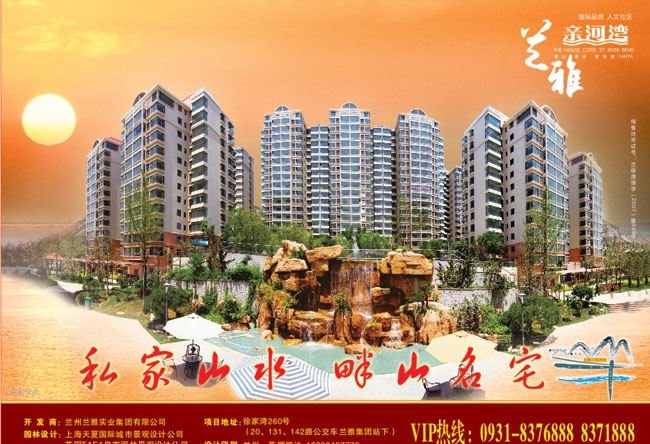 兰雅•亲河湾背靠的九州台山国家森林公园是兰州市政府近年来进行大力绿化和保护的植物带,数十里山脉被绿色覆盖形成一条林木绿色走廊。项目门前是九转千回的黄河洄水湾,蜿蜒而奔腾的项目增添了更多的风情和豪迈。兰雅•亲河湾的“地中海”式园林设计,采用国际领先手法,打造多层次立体集约式绿化系统,将传统的平面化绿地体系立体化,社区临规划道路设有集中绿地,社区内部诘绿洗石、椰风碧韵、静坪清思、活水生香、卧锦列翠、住月林、清涧流香、卧锦谷等九大景观园林,休闲区、活动区、楼宇之间、园林道路无处不充满绿地、花卉和各种植物,使绿色形成点、线、面的多层次效果。利用小区独有结合了山势的三级阶梯式布局,将水从最高层处由上而下分层引入小区,依山势的跌瀑、点缀的喷泉,再到小区中心广场达到高潮,又顺势经主入口流出小区。做不到山、水、人文的融合,就谈不上畔山水岸生活。兰雅•亲河湾将山、黄河水、园林等多种自然因素系统的整理,有节奏、有关系地设计进去,让东西文化很好的结合,使处在畔山水岸生活物业核心带的中庭广场形成城市公共生活空间的节点,内设以水景为主的诘绿洗石,广场中心设立水景池,池中设立喷泉、并以景石堆砌池畔,与小区其他景观形成循环水系统。创造一个文化心脏,为整个社区形成节奏,形成高潮起落的畔山水岸生活!